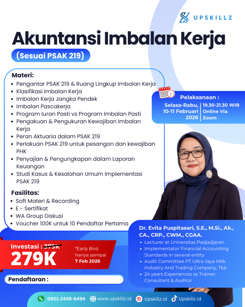 Kupas tuntas klasifikasi, pengukuran, hingga penyajian imbalan kerja sesuai standar terbaru bersama Pakar Akuntansi & Auditor berpengalaman selama 24 tahun.