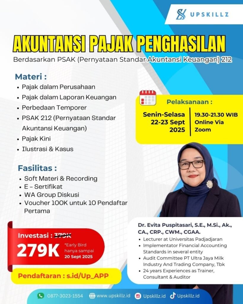 Pajak penghasilan sering kali menjadi tantangan bagi akuntan maupun staf keuangan. Banyak perusahaan masih mengalami masalah seperti salah perlakuan pajak dalam laporan keuangan, kesulitan membedakan transaksi temporer dan permanen, hingga kebingungan menerapkan PSAK 212. Akibatnya, laporan keuangan berisiko mendapat temuan saat audit dan kepercayaan manajemen pun bisa terganggu.