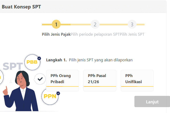 - Selanjutnya pilih jenis SPT yang akan dilaporkan
