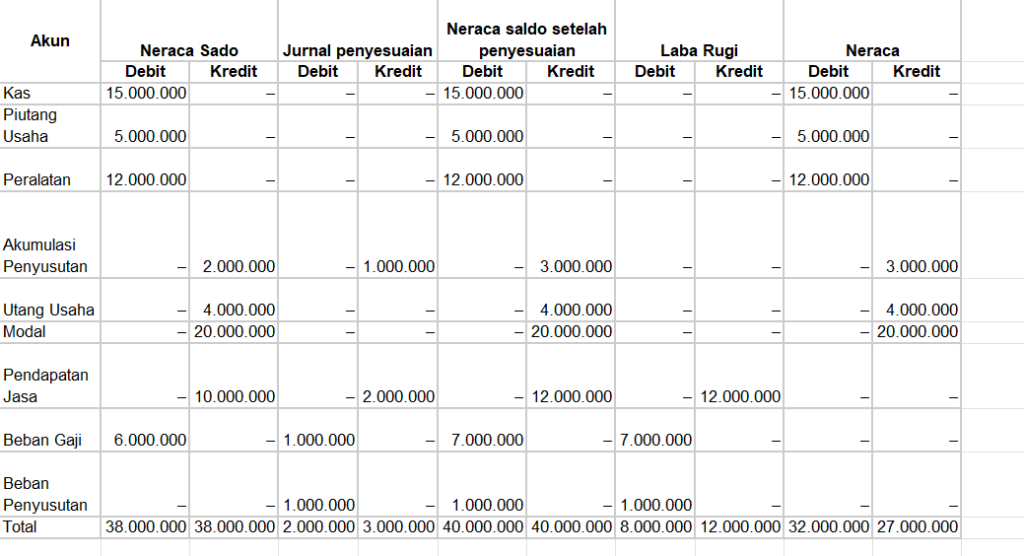 Contoh Neraca Lajur Perusahaan Jasa